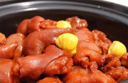 5. 收汁:待猪脚炖至软烂,汤汁浓稠时,加入适量的糖、盐、鸡精等调料,翻炒均匀,使猪脚更加入味。